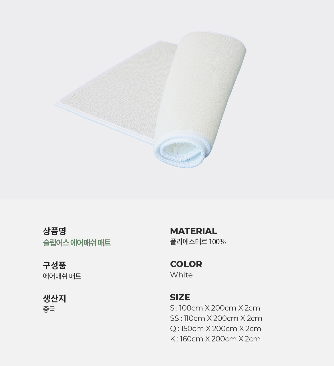 에어매쉬매트는 라텍스 매트리스에 전달되는 열을 분산시켜 매트리스를 보호합니다.