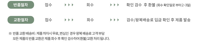 - 교환/반품은 해당제품 회수 및 검수완료 후 교환제품 발송 및 환불처리 됩니다.