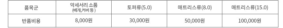 - 베개, 소품 교환의 경우 왕복 배송비가 발생합니다.