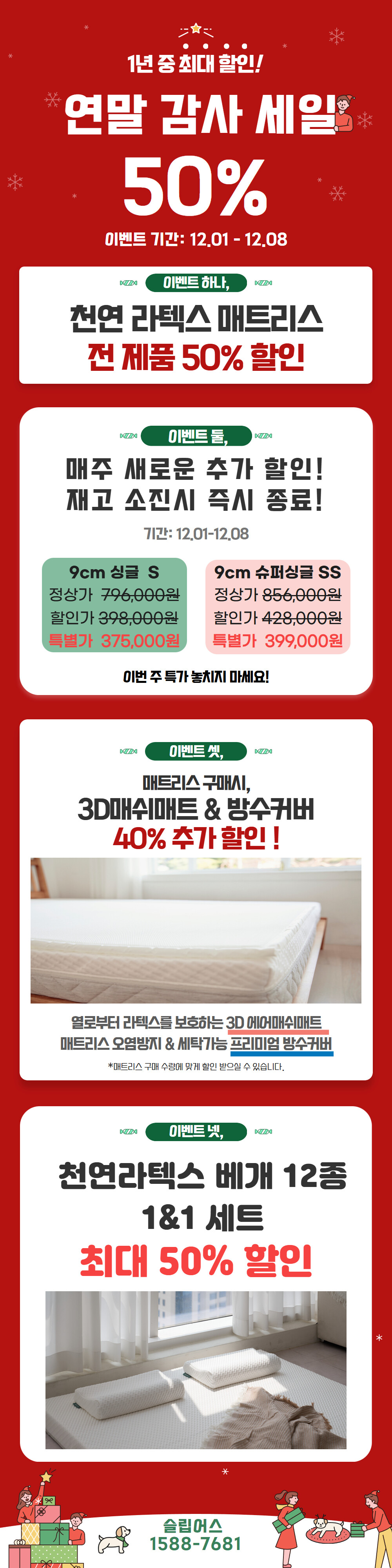 - 취소/교환/반품시 슬립어스가 직접 택배사 혹은 자체 전문기사를 지정하여 보내드리며, 자의적으로 반품업체를 지정하여 반품하실 경우 환불이 원활하게 이루어지지 않을 수 있습니다.